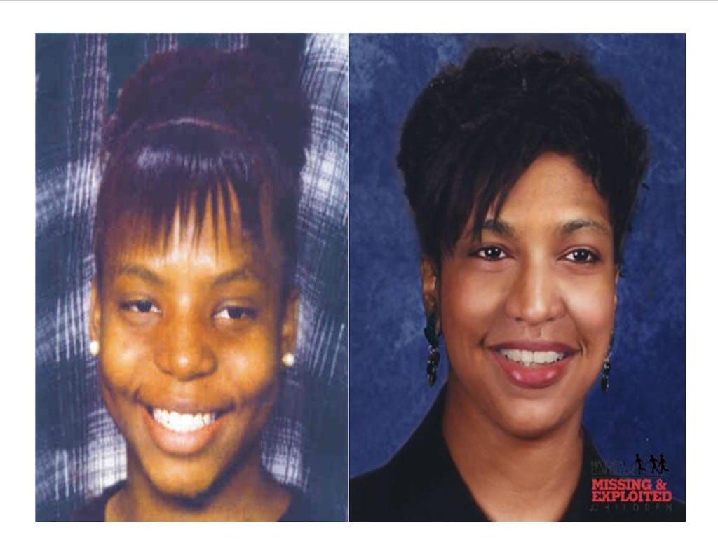 The lead photo at the top of this page: (left) what Kimberly looked like when she was last seen, (right) computerized age progression of what she may look like as an adult.